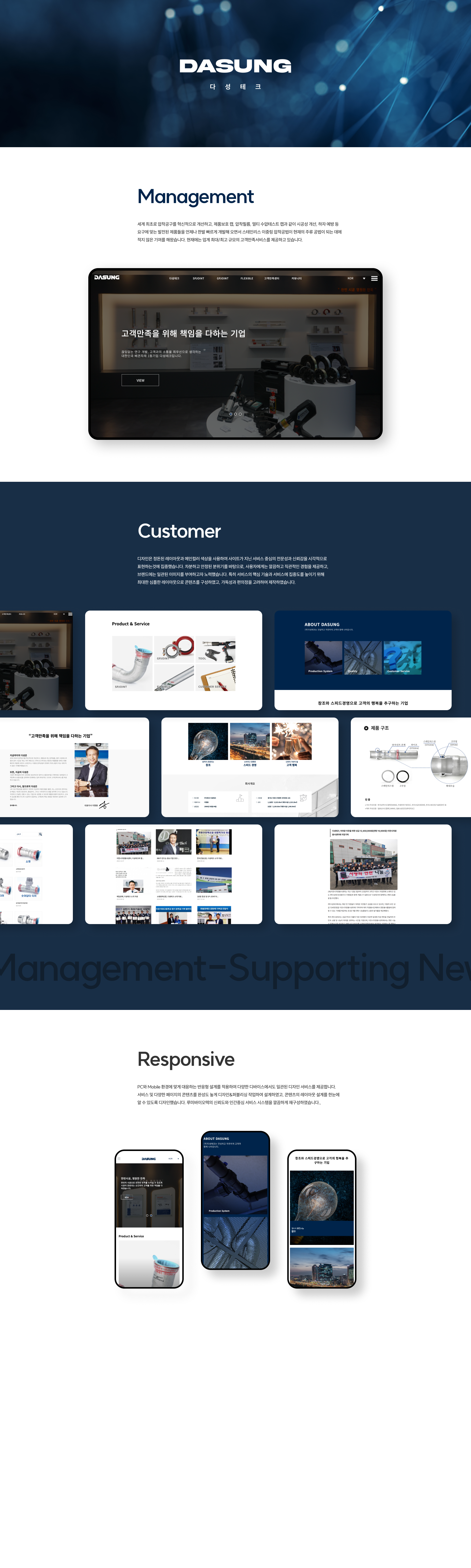 배관자재 전문 기업으로서의 기술력과 신뢰성을 강조하는 디자인 컨셉으로, 전체적인 레이아웃은 사용자 친화적으로 구성되어 있어 방문자들이 원하는 정보를 쉽게 찾을 수 있도록 하였고, 주요 메뉴를 명확하게 배치하여 사용자가 필요한 정보를 빠르게 찾을 수 있도록 구성하였습니다.