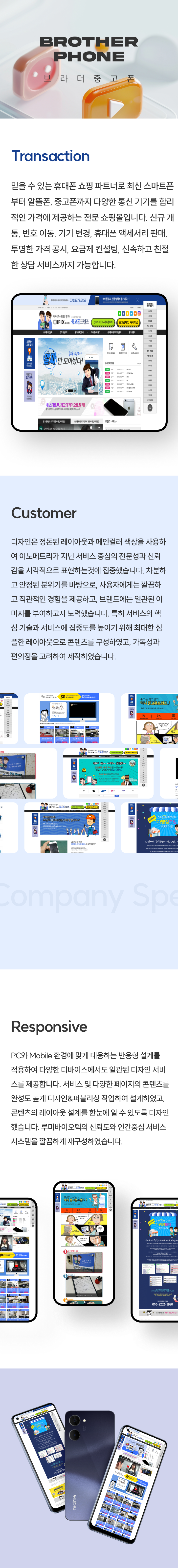 중고폰 브랜드명을 부각시키고 고객에게 신뢰와 믿음을 주는 느낌으로 디자인 및 기획