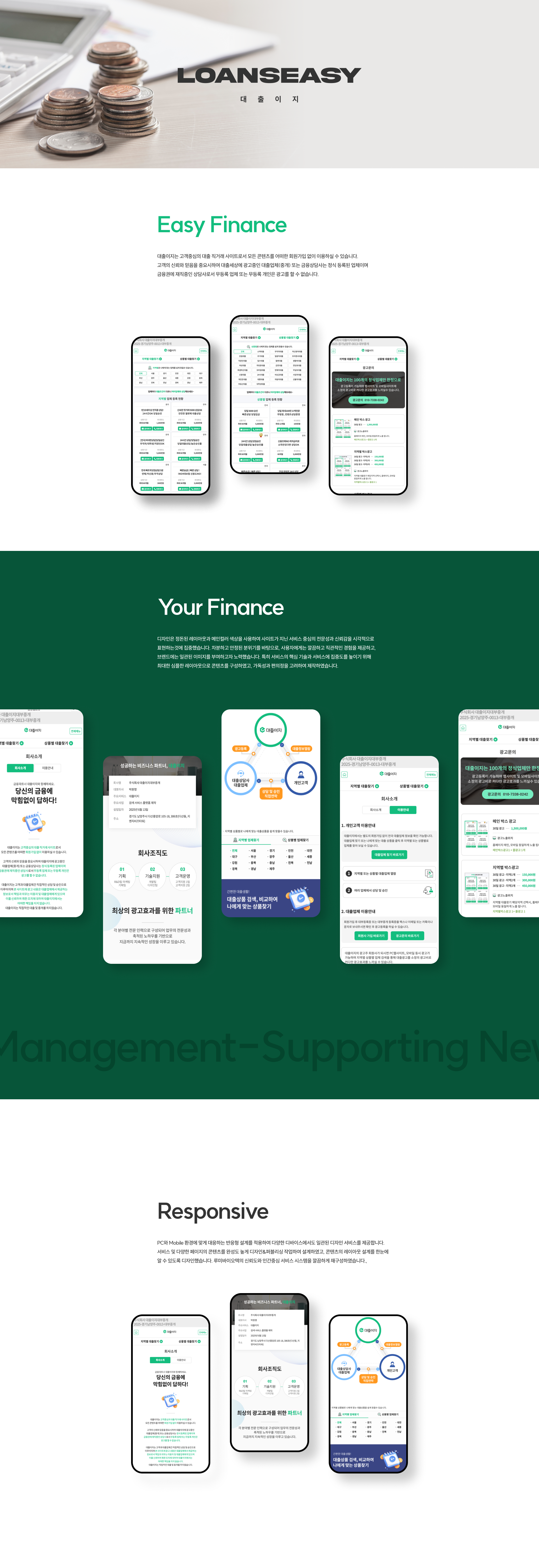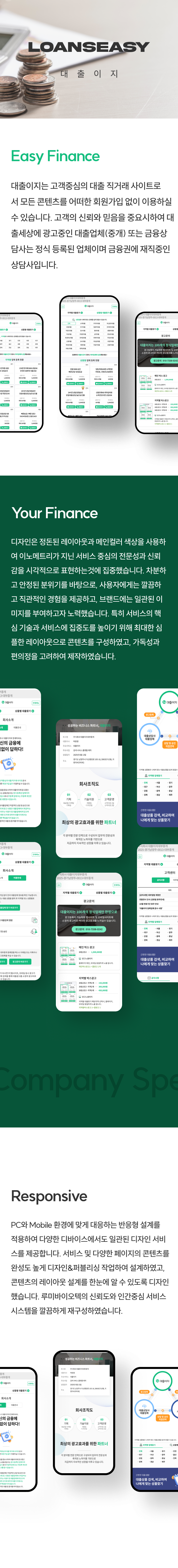 대출 상품 비교 및 신청을 지원하는 금융 플랫폼으로, 사용자 친화적인 디자인을 기획으로 간결한 메뉴 구성과 명확한 내비게이션을 통해 사용자가 혼란 없이 서비스를 이용할 수 있도록 설계하여, 용자 중심의 금융 서비스 제공과 편리한 대출 정보 접근을 효과적으로 반영하였습니다.